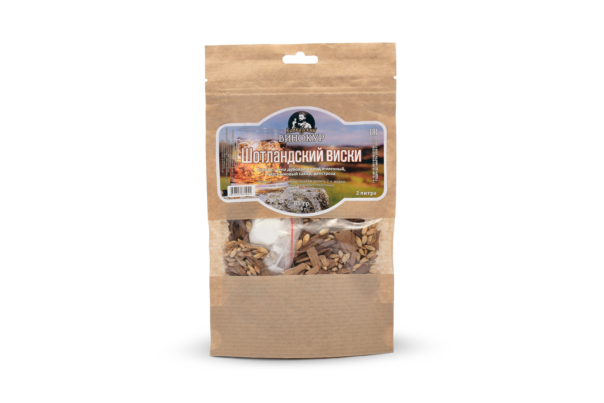 Набор поможет сделать отличную имитацию Ирландского виски — одного из старейших крепких напитков в Европе. От других видов его отличает мягкость во вкусе, отсутствие резких дымных ароматов, приятный букет со сливочными и фруктовыми нотками. Из ингредиентов понадобится сам набор и алкогольная основа, которой может выступать самогон или обычная водка.